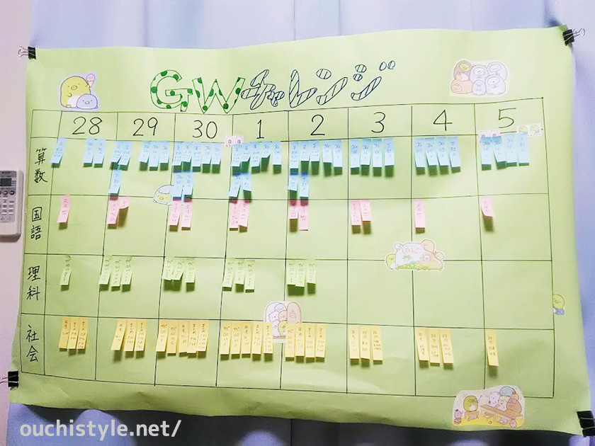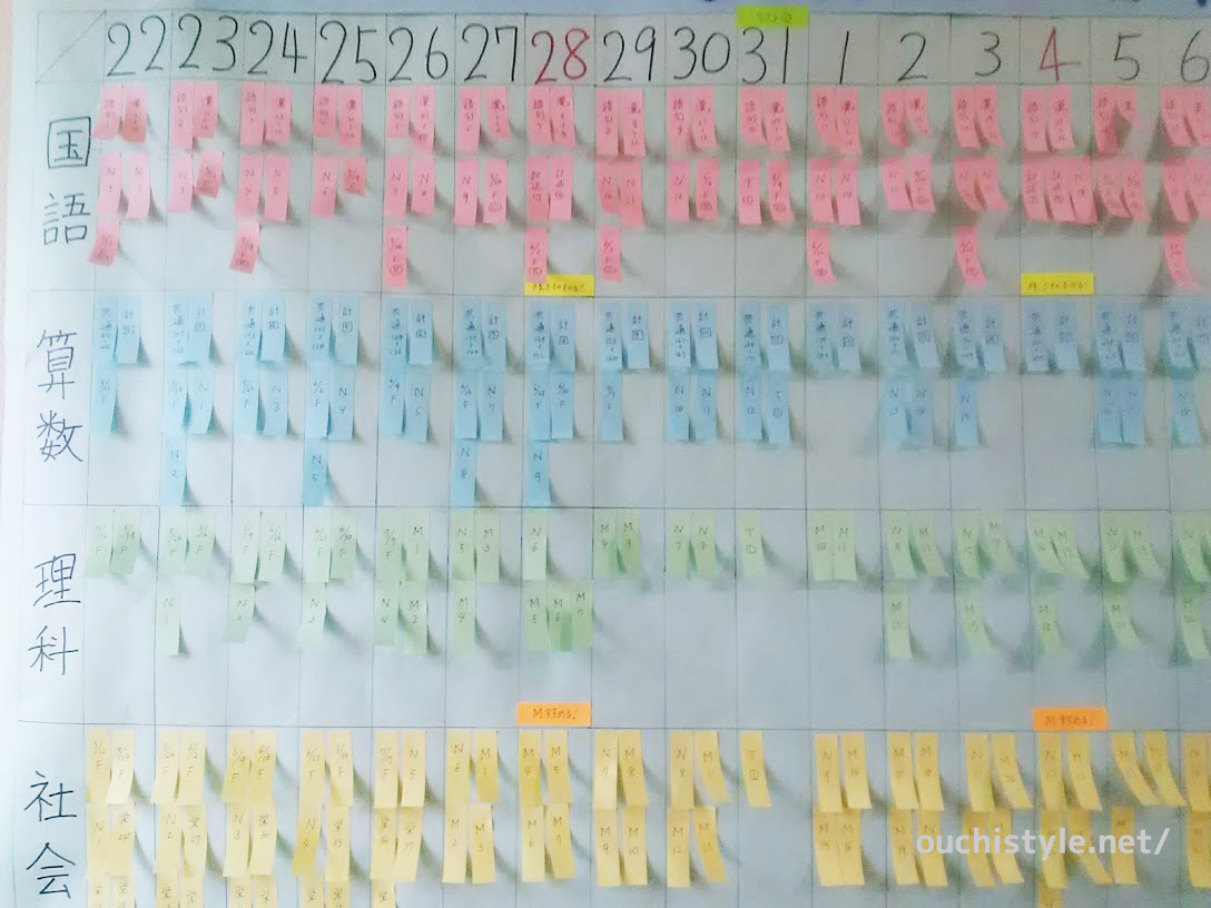 勉強管理にも付箋が活躍|小学生のやること整理