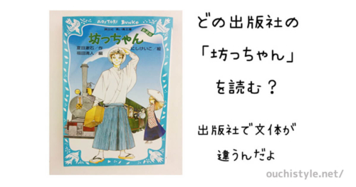 いざ、本屋さんで夏目漱石の「坊っちゃん」を買おうと思うと、色々な出版社があり、迷いました。