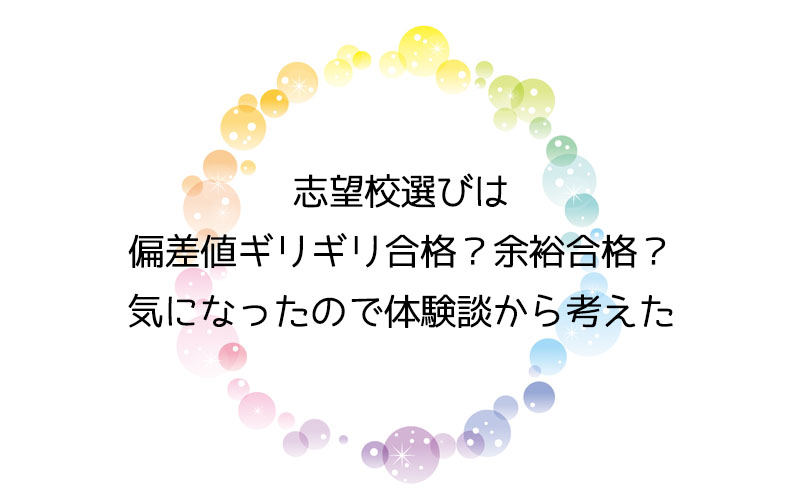 もちろん、子供の偏差値が高くても入試に「ゼッタイ」ということはないですし、狙って合格できるものでもなく、あくまでも志望校選びで想定する時に考えたことの体験談です。