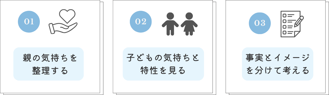 親の気持ちと、子どもの特性と、現実の情報を分けて見ることでした。